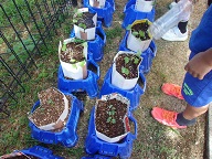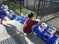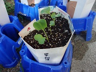 2年生が大根の種をまきました。毎日水やりに通っています。土日の休みが明けると、「あっ!芽が出てる」「芽が伸びてる!」という声が。喜んで水やりを続けていました。大きな大根に育ちますように。
