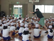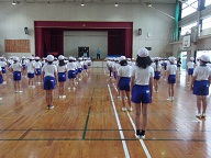 運動会に向けての練習が始まっています。4年生は団体演技「ソーラン節」の練習です。腰を低くして「構え!」から入ります。先生のお手本や説明に対して真剣な態度で臨む4年生。整列もとてもきれいにそろっています。素晴らしい!