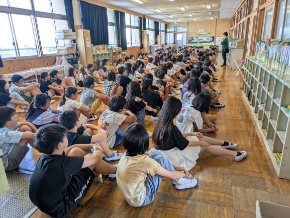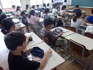 9月の生活目標は「時間を守ろう」です。今日は全校放送で話を聞いて自分をふり返りました。もう一つの大事な話は「持ち物について」でした。筆箱の中身の話がになると、自分の筆箱をを確かめて、「大丈夫や!」「赤鉛筆がない!明日もってこよう」など友だちどうしで話をする姿も見られました。