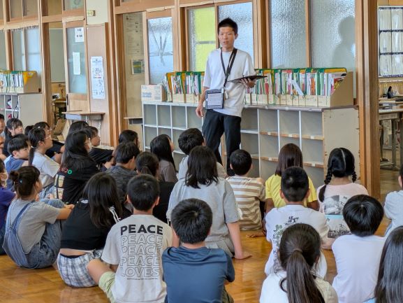 友だちと「How are you?」のあいさつで始まります。今日は『What time?」の学習です。何時に何をするかです。「起きる」「朝食」「勉強」「給食」「おやつ」・・・1日にすることを順番に英語で言います。一番言いにくくて困ったのが「breakfast time」。リズムにのせて楽しく何度も発音しました。2025/09/04