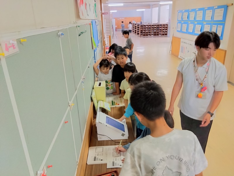 2年生は算数で『かさ』の学習をしています。リットル、デシリットル、ミリリットルなど色々な単位があります。今日は2Lと18dLどっちが多い?を考えます。タブレットや黒板でみんな一生懸命考えていました。