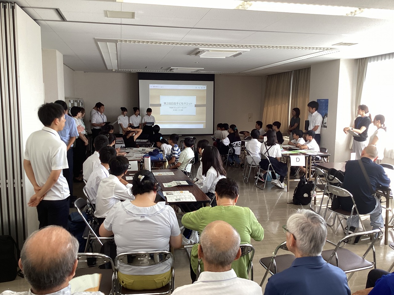 日吉中学校区の6小中学校が集う「第2回 日吉サミット」が下阪本市民センターで開催され、代表児童6名が参加しました。「地域の方々と協働して取り組めること」をテーマに、各校の代表や地域の方々とSDGsの視点に立って意見交流を行いました。