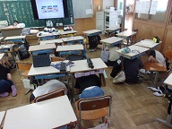 始業式が終わったあと、シェイクアウト訓練をしました。