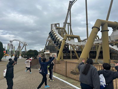 「夢にまで見たスペイン村」「(ジェットコースターが見えると)拍手」など、とっても楽しそうな6年生です。