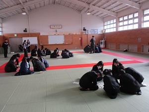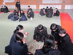 1年生は、武道場でかるた大会を行いました。