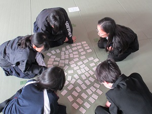 他のグループでも自分が覚えた札を取ろうと、必死に競い合っていました。