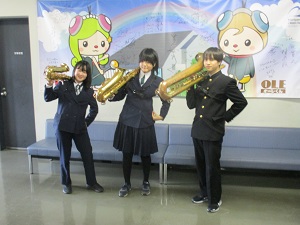 本校から吹奏楽部の3名が出演し、サクスフォーン3重奏の演奏を行いました。