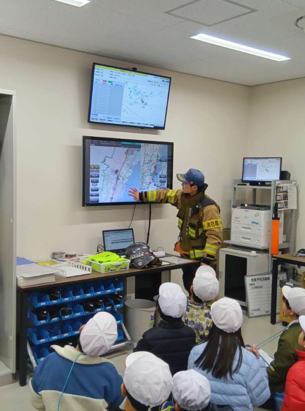 モニタの前でどの道を通るか、どの場所の消火栓や防火水槽を使うかなどの作戦を考えられるそうです。