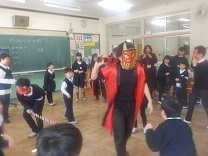 節分は昨日でしたが、中央小学校の教室に鬼がやってきました。