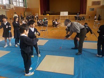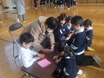 1年生の生活科の学習で、地域の方をお迎えし、昔遊びを教えていただきました。