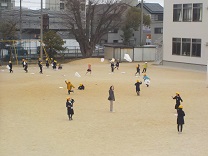 生活の学習。運動場で、たこ揚げをして楽しみました。