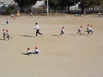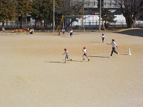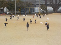 今日はとても寒い日でしたが、子どもたちは、たこが下がらないようにと一生懸命走り回りました。