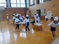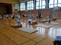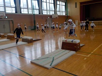 体育の学習。とび箱を使って運動をしました。