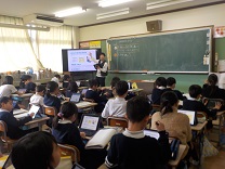社会の学習。自分たちが暮らす大津市では、自然災害に備えてどのようなことをしているのかについて学習しました。