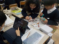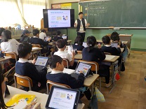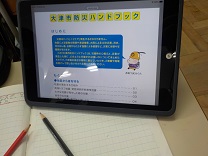 タブレットで大津市の“防災ハンドブック”を調べながら、学習を進めていました。