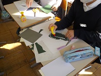 いろいろな素材の紙を使って工夫をしながら取り組んでいました。