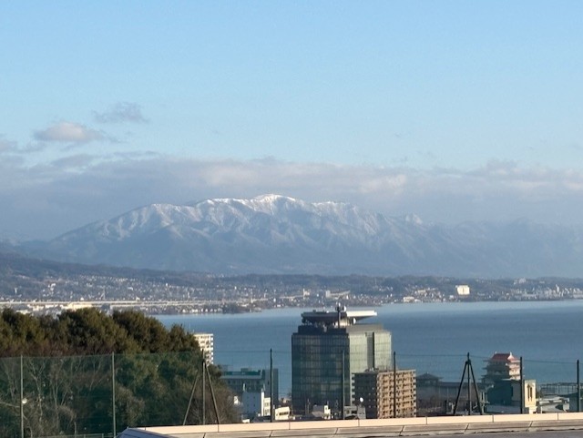 ここ数日、朝と昼の気温差が大変大きくなっています。遠くに見える比良山系はふたたび雪化粧し、季節の移り変わりを改めて感じる景色となりました。