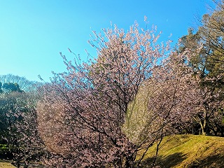 皇子が丘公園の桜はちょうど今、満開を迎えています。この桜は、ハツミヨザクラ(初御代桜)という品種で、およそ180本が植えられているそうです。他の桜に先駆けて、早春の時期に花を咲かせることから、ハツミヨザクラと名づけられています。そのため、皇子が丘公園は、大津市で一番早くお花見ができる場所として知られています。