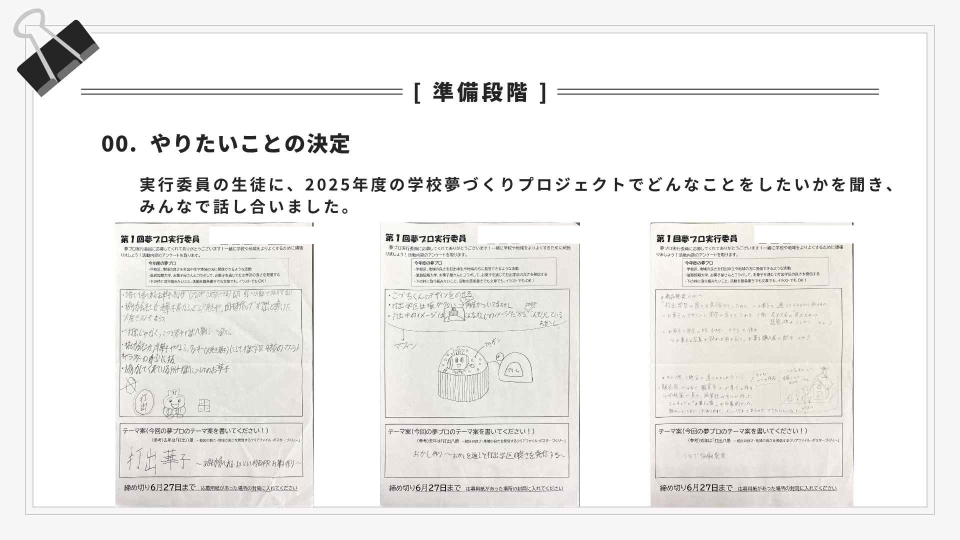 まずは全校から実行委員を募集しました。多くのメンバーが各学年から手を挙げてくれました。