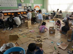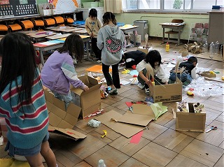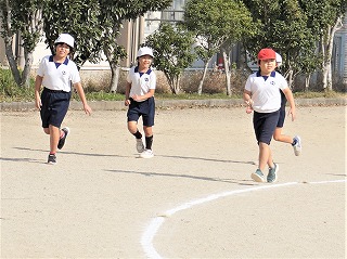 1年生の生活では、秋祭りの準備をしています。楽しい催しになりそうです。2年生の生活では、おもちゃランドの準備をしています。おもちゃが工夫されています。3年生の体育は「チャレンジマラソン」に挑戦しています。