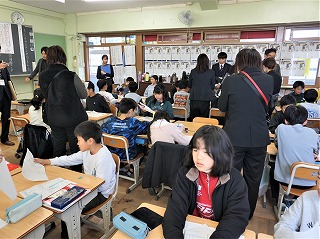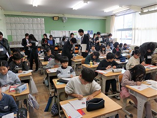 今日は、4年生の研究授業の日です。4年生以外の子どもたちは給食後、下校となりました。4年生は国語の授業です。多くの先生に囲まれながらも、一生懸命、授業に取り組む姿が印象的でした。子どもたちにとって分かる授業、楽しい授業とは何か、を追求しています。