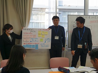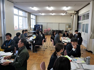 授業のあとが大切です。全教職員が知恵を出し合って、授業について語ります。国語の授業は、全学年共通です。「書く力」をどのように身に付けるか、自分の考えをどのように引き出すか、班の仲間とどのように深め合うか、について論議しました。市や県からも最新の情報をもとに指導いただきました。