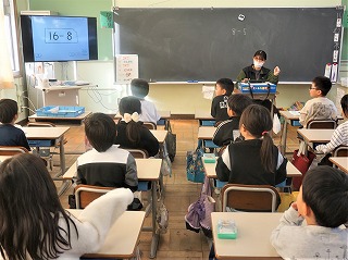 1年生の算数は引き算です。より速く、より正確に計算することも大事ですが、どんな場面で引き算を使うのかも重要です。問題文を読んで、自分で引き算が活用できるようにしています。2年生の国語では、お話のあらすじをまとめる学習をしています。