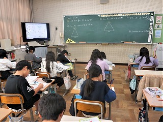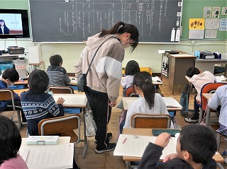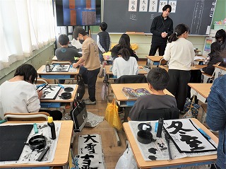 3年生の算数では、三角形の描き方を考えています。また体育では、チャレンジマラソンの練習をしています。4年生の書写では、勢いのある字に挑戦しています。