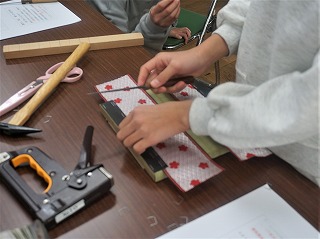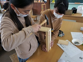 今日は、6年生で「ものづくり教室」が開催されました。5つの種類に分かれて活動です。ものづくりマイスターの皆様のご指導のもと、普段経験できないものづくりをすることができました。写真は「建築大工」です。木製タブレット台を製作しました。