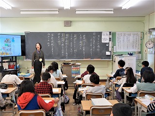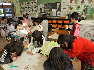 1年生の国語では、漢字のばらばらクイズをしていました。盛り上がっていました。2年生の図工作品が実にカラフルに良い作品となりました。3年生の算数では、お話を式に表しています。計算方法だけマスターするのではなく、生活のどの場面で活用するのかが大事です。