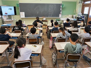 1年生の国語では、むかしばなしの学習を進めています。2年生の音楽は、クリスマスソングを歌っています。とても元気な声で響かせていました。3年生の算数では、かけ算とわり算の考え方について考えています。