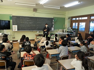 1年生の算数では、さんすうで冬支度をしています。足し算クイズです。また学活では、すてきな冬休みの過ごし方を考えていました。2年生の体育は、運動場でチャレンジマラソンに挑戦しています。