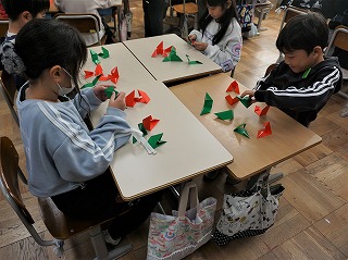 3年生の学活では、クリスマスツリーを完成させてクリスマスパーティーをしました。4年生の国語では、工芸品の魅力を伝えるパンフレットを作りました。5年生の保健体育では、健康な生活を送るための手洗いについて調べていました。