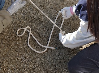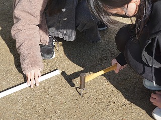 6年生が進めている防災学習の一環です。ペグを打ち、先日学習したロープワークを活用して、立てます。自分たちで組み立てを考えながら班ごとに次々に完成していきました。実際に避難所になったときに、役にたつと思います。