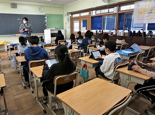 3年生の国語では、確認プリントのテストをしました。4年生の学活では、タブレットの使い方について確認をしていました。6年生の社会では、クイズ大会をしていました。