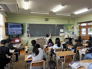4年生は、一人一台タブレットの整理をしています。使い方を確認しました。5年生の国語では、「冬の朝」の学習を進めています。6年生の算数では。拡大・縮小の単元テストをしていました。