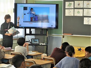 3年生の図工では、紙の性質を使って、ユニークな絵を描いています。5年生の外国語活動では、動画を見ながら、英語のコミュニケーションについて、学んでいます。5年生では、運動会の衣装の文字を製作しています。