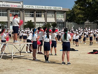今日は「わにっこ集会」の日です。運動会の応援の練習をしました。運動会当日の開会式直後に行われる「応援披露」は、毎年工夫された内容です。応援団に所属するメンバーが一生懸命考えた流れです。全校児童の気持ちを1つにして、練習しました。