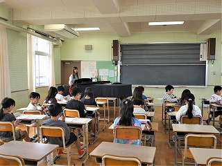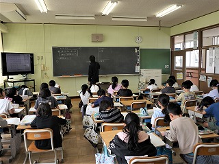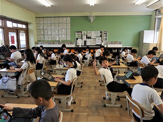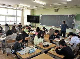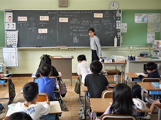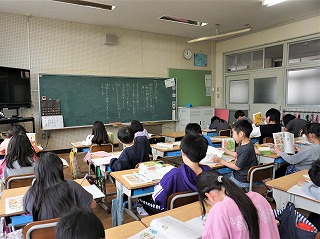 3年生の算数は、少人数学習です。1つの学級を2つに分けて、学習を進めています。3年生の大事な時期に、積み上げがしっかりできるように、しています。教室が半分、空いています。6年生の国語では、「帰り道」の単元を学習しています。