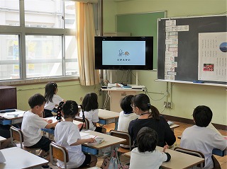 1年生の国語では、ひらがなの学習をしています。2年生の国語では、漢字の学習をしています。5年生の外国語科では、授業の準備中です。