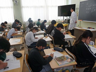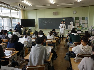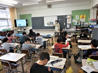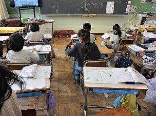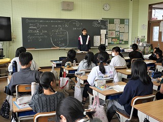 今日は、志賀中学校からの出前授業がありました。もうすぐ卒業を迎える6年生に中学校の授業はどんなものかを体験してもらいます。理科の授業で、元素記号の内容でした。みんな真剣に授業を受けていました。