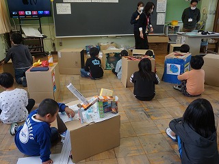 今日はお花学級の研究授業の日です。箱の中に自分の世界を作りました。大切にしたいことは、お互いに作品を見て「いいね」を見つけ伝えることです。工夫ある作品もすばらしかったですが、多くの「いいね」が見つかりました。